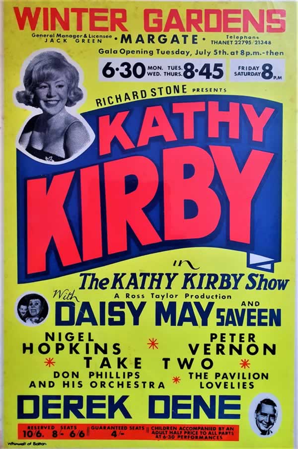 - Advertised as Winter Gardens - Margate General Manager and Licensee : J. D. Green Sunday, 25th June At 8 p.m. Petula Clark And Bumper Variety Bill Reserved 7/6, 6/-, 4/6 ; unreserved 3/-.