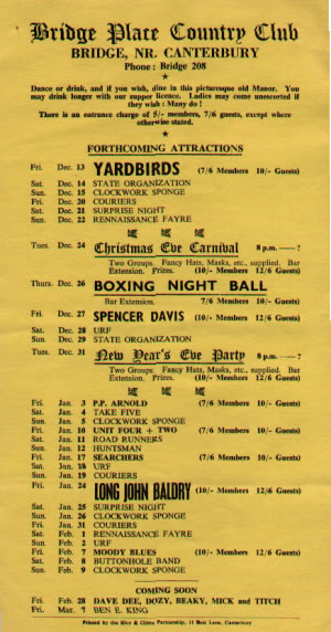 The house was converted in the 60's by Peter Melkin and his brother into a succesful club. It was host to some of the best acts in the world in it's time as a live music venue.