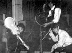 Top picture on the right. From left to right: Steve taylor (guitar). Steve never actually played with the Wild Sect, just rehearsed with them; Rod Jones (guitar / vocals); William Whitewood (Drums). Picture taken in the Woodward Hall the Bayle, Folkestone.