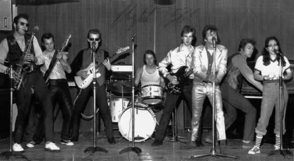 For the next three years we toured extensively in England, Scotland, Wales, France, Belgium, Holland, Germany and Denmark with Tina, Nick and Jerry as the constant nucleus of the band. We were joined by Drummers; Nick Walker, Les Bailey, Steve Murray, Wally Doyle, Barrie Jenkins (Nashville Teens & the Animals), and Piano Players; Perry White, Steve Cameron (Jerry lee Lewis band), Charlie Barber, Dave Taylor and Pete West (Rocky Sharpe and the Razors).