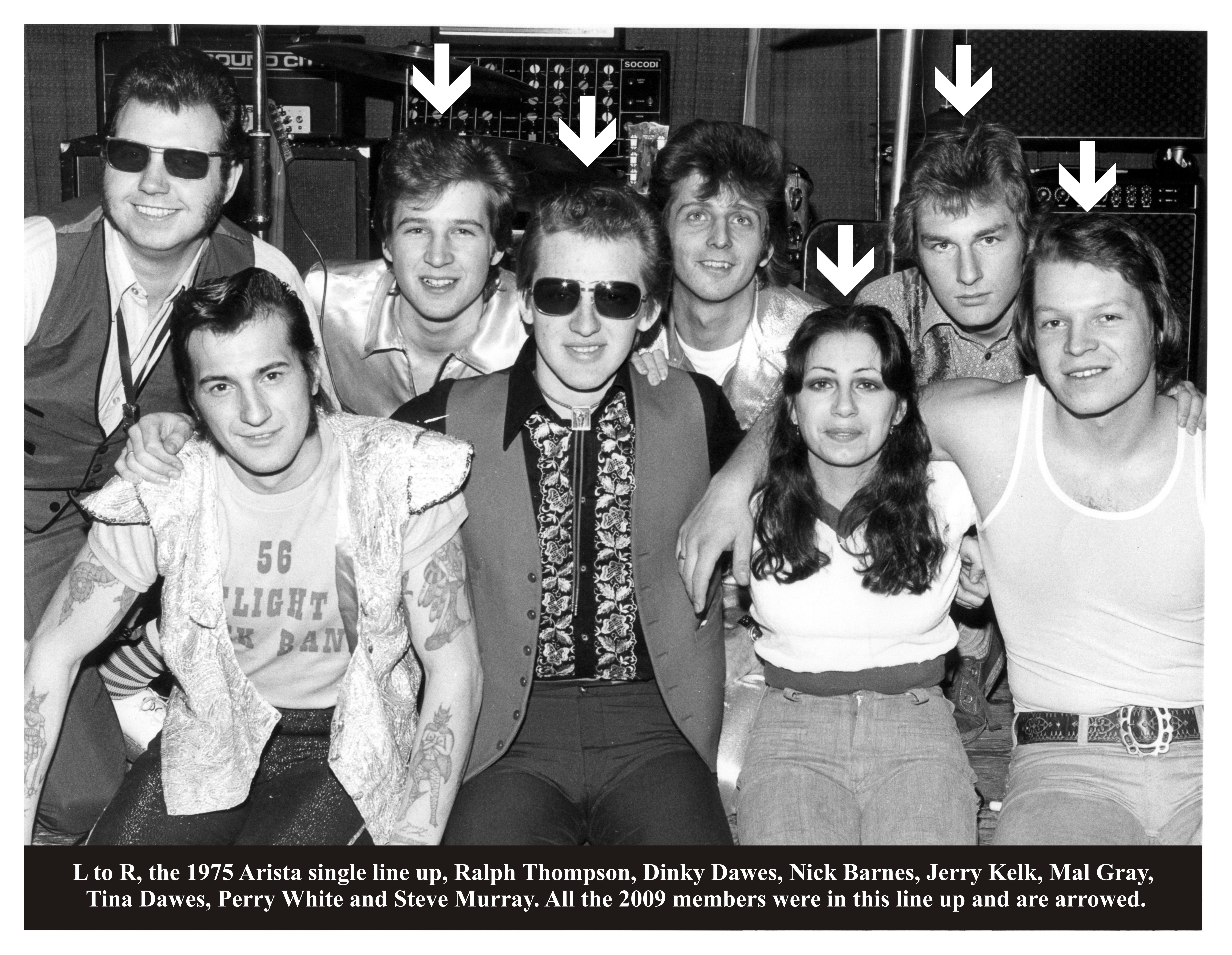 In 1973 the band took off with a top line up, plus the name change to Flight 56. The new line was, Dinky Dawes (Bass Guitar) Ralph Thompson (Tenor Saxophone) Jerry Kelk (Lead Guitar) Nick Barnes (Rhythm Guitar & backing vocals) Perry White (Piano) Keith Hedges (Alto Saxophone) Martin Wakefield & Steve Murray (Drums) Les Wills (Vocals) Tina Dawes (Vocals)