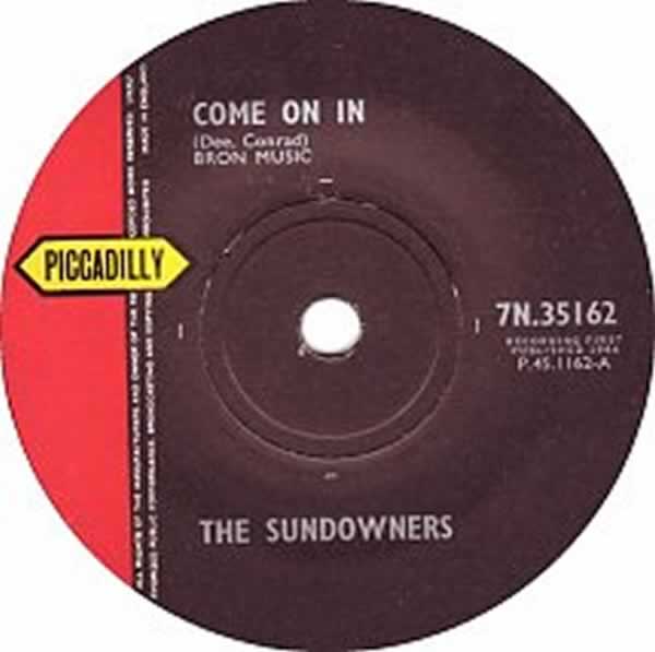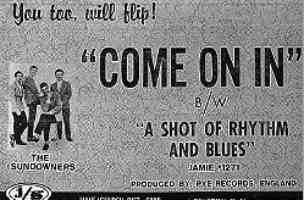 Second Single - Come On In / Shot Of Rhythm And Blues (Piccadilly 7N 35162) 1964 Distrib/Label - Jamie 1271 SUNDOWNERS, THE Come On In / A Shot Of Rhythm & Blues 2/8/64