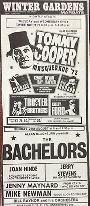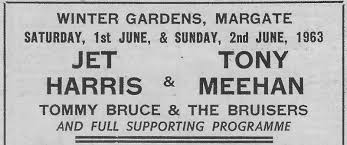 - Whit-Saturday, June 1, 1963: Jet Harris and Tony Meehan, Tommy Bruce and the Bruisers plus support. Advertised as Winter Gardens, Margate Saturday, 1st June, & Sunday, 2nd June, 1963 And Full Supporting Programme.